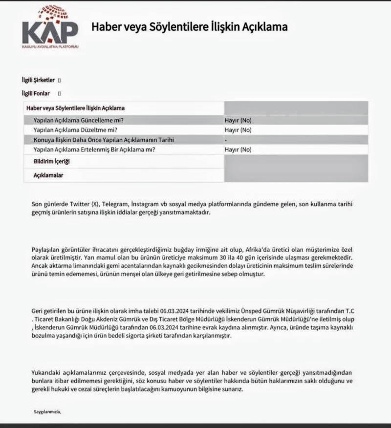 Konuya dair önemli açıklamalarda bulunan OBA Makarna yetkilisi, bu iddiaların gerçeği yansıtmadığını söyledi. OBA Makarna yetkilisi, ''Bu ürünler satışa çıkartığımız ürünler değildir. Bu iddialar tamamen gerçek dışıdır. Bu ürünler tamamen imha edilmesi için gümrükte bulunan ürünlerdir. Oba Makarna olarak bu iddiaları ortaya atan kişiler ile yargı önünde hesaplaşacağız'' dedi.