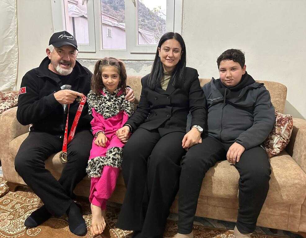Deprem bölgesindeki diğer illerin yanı sıra Nurdağı ve İslahiye bölgesine de yine çeşitli yardımlar yapan Türker, Maraton’da örnek bir duyarlılık göstererek kazandığı madalyayı da İslahiye’nin Sulu Mağara köyündeki depremde anne, babasını ve kardeşini kaybeden 10 yaşındaki Latife Yalçın ile 12 yaşındaki ağabeyi Mevlüt Yalçın’a da şapka ve formasını hediye etti. Türker, ayrıca köyde, çocuklara mont, bot, okul malzemesi de hediye etti ayrıca köy çocuklarına da hediyeler dağıttı.
