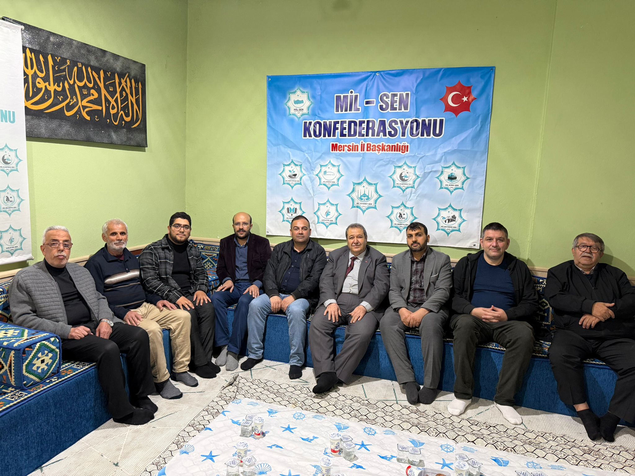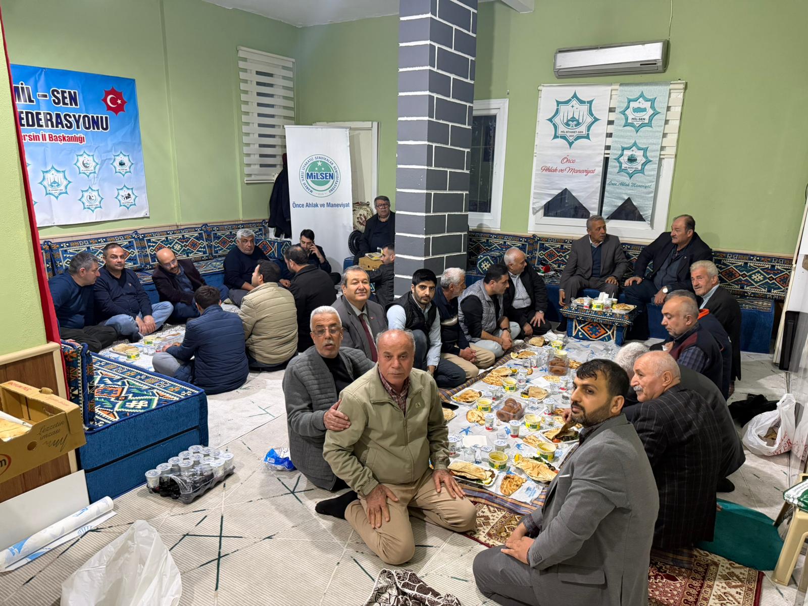 Mil-Sen Mersin Şube Başkanı Şaban Helvacı’nın ev sahipliğinde gerçekleştirilen iftar yemeği, Mil-Sen Mersin Şube Ofisi’nde yoğun katılımla düzenlendi. Programa sendika üyeleri ve davetliler katıldı. Aynı sofrada buluşan katılımcılar, Ramazan ayının manevi atmosferinde bir araya gelerek sohbet etme ve dayanışmayı güçlendirme fırsatı buldu.