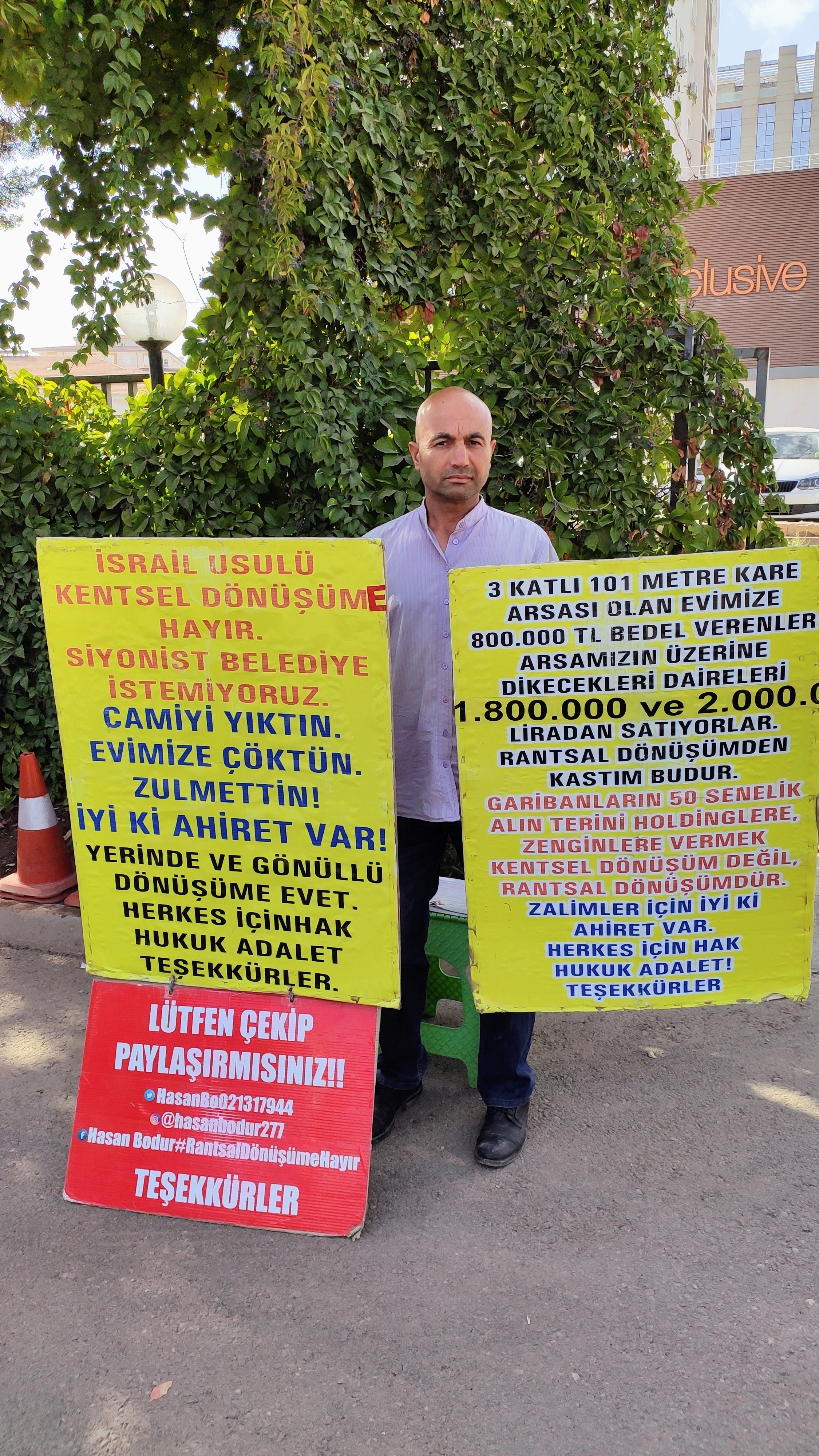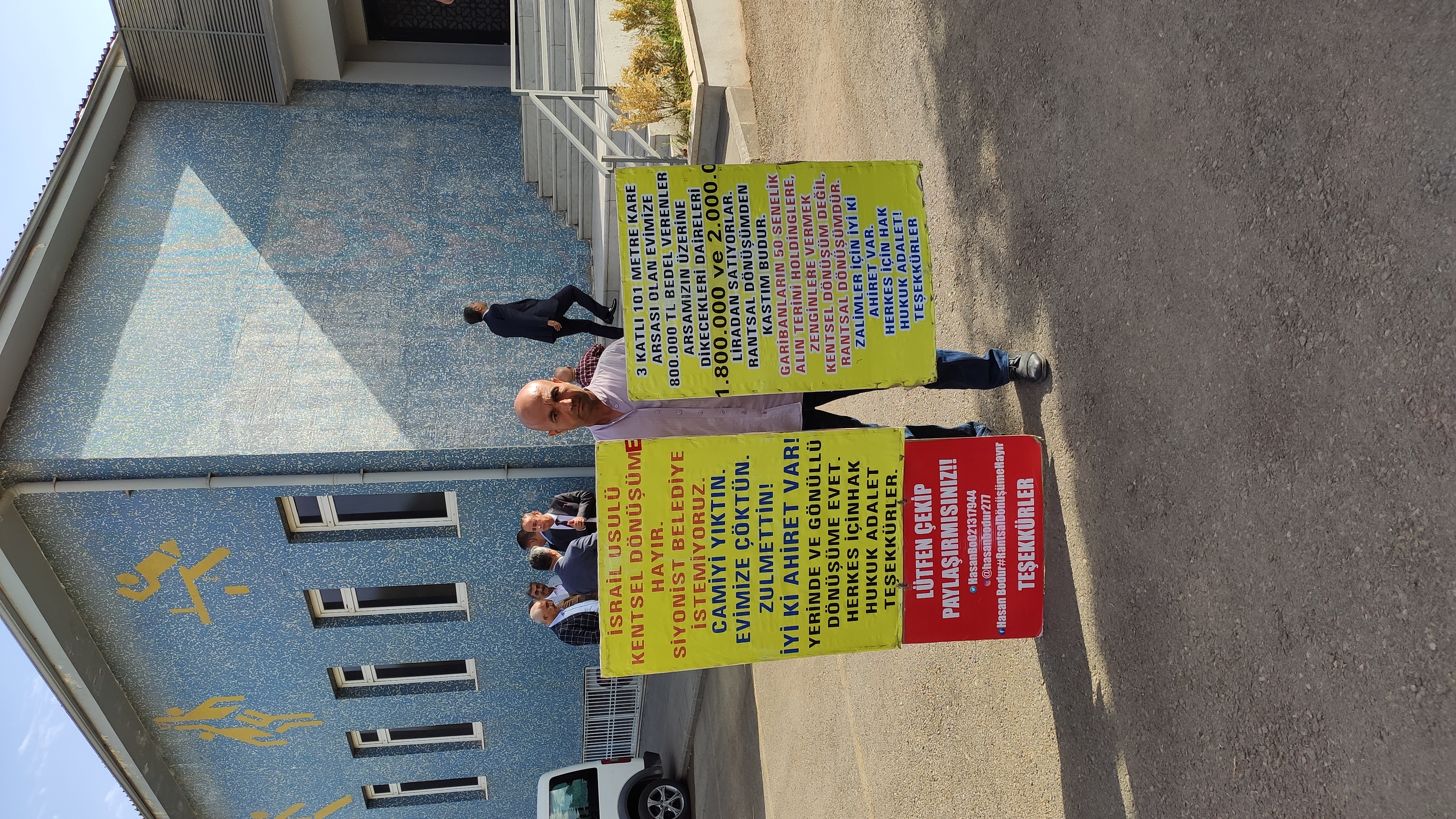 Şehitkamil İlçesi Eydibaba Mahallesi'nde yaklaşık 50 yıldır ailesine ait olan 4 katlı binada yaşayan Hasan Bodur isimli vatandaş Şehitkamil Belediyesinin İpekyolu üzerinde kentsel dönüşüm projesinden dolayı maruz kaldığı 392 günlük mağduriyete karşı her gün şehrin bir noktasında ellerinde ki pankartlar ile adeta adalet arıyor.