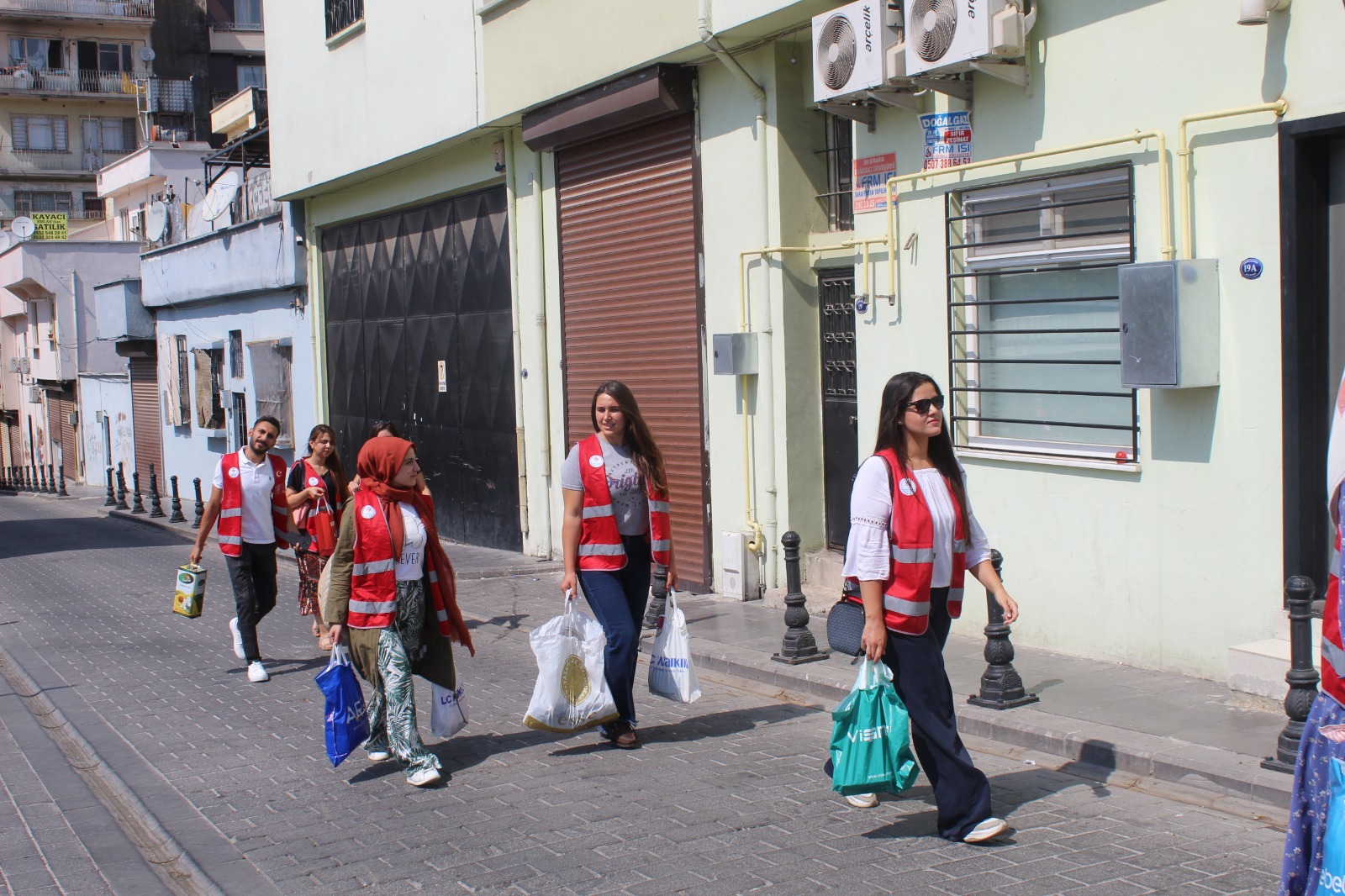 17 üniversiteli gencin katılımıyla paylaşma, kardeşlik ve sevgiyi ete kemiğe büründüren gençler ihtiyaç sahibi ve dezavantajlı ailelerin kapılarını kendi imkanlarıyla topladıkları kurban eti, kitap, oyuncak, kıyafet ve erzakla çaldı.